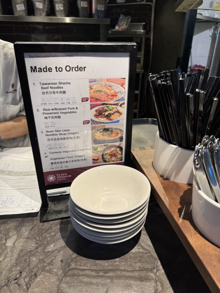 Die Plaza Premium Lounge lohnt sich für Nudel-Fans! Die Made-to-Order Nudeln sind das absolute Highlight und rechtfertigen den Besuch allein. Der Rest ist solider Priority Pass Standard – offen, manchmal laut, aber funktional.